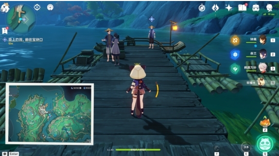 6、从瞭望塔飞到下方,登上竹筏,前往宝玦口,你可以看到有船家。