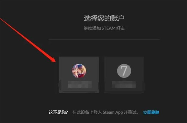 5、点击添加steam好友后,会弹出这个界面,因为开始已经登录好steam账号了,这里直接选择自己的steam账号即可,如图所示选择自己的steam账号