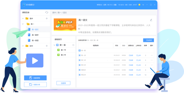 1、创建分类可以使得结构更加清晰,所有的加密软件中创建的样式都会在播放器中逐一展示。例如,某一位老师进行高中英语的教学,分类可以创建成为高中英语,子分类为高中三个年级,再在不同分类下创建课程,课程下能进一步实现章与节的分类