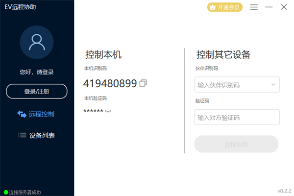 首先我们先确保两台电脑都安装了EV远程协助,打开软件: