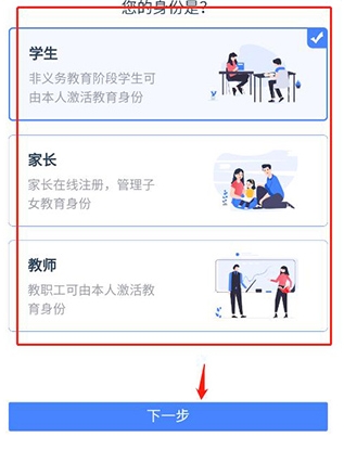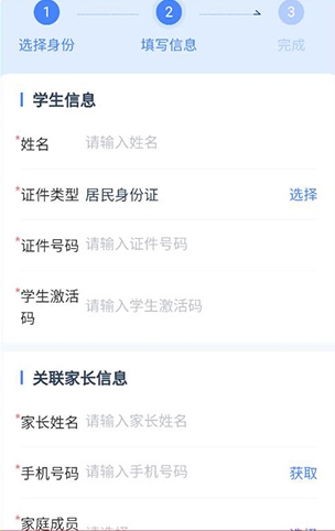 其次就是选择上面的信息进行填写,可以选择学生、家长和教师。