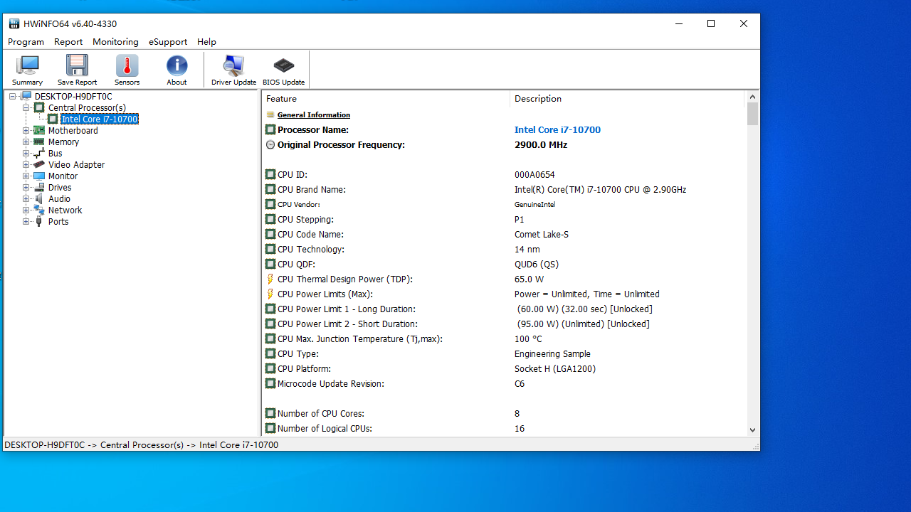 启动时,您可以使用默认配置运行该工具,或仅查看传感器信息或摘要。 HWiNFO64 可能需要一段时间来加载数据。详细信息围绕中央处理器、主板、内存、总线、视频适配器、监视器、驱动器、音频设备、网络和端口展开。