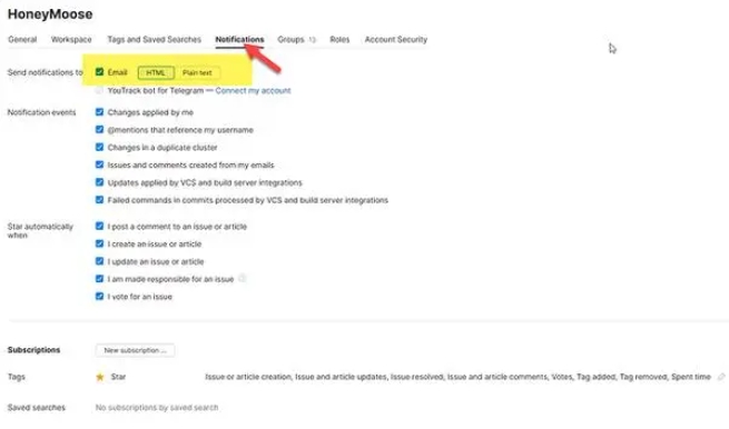 这样就完成了在 YouTrack 中的邮件通知设置了。