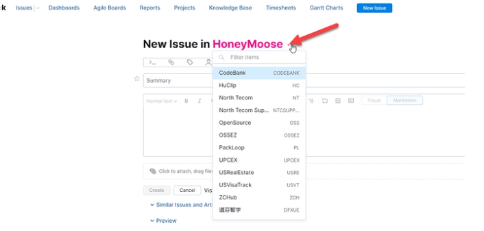 在创建问题的时候,JIRA 是通过选择项目,然后单击创建,这个创建就会直接在项目中进行创建了。