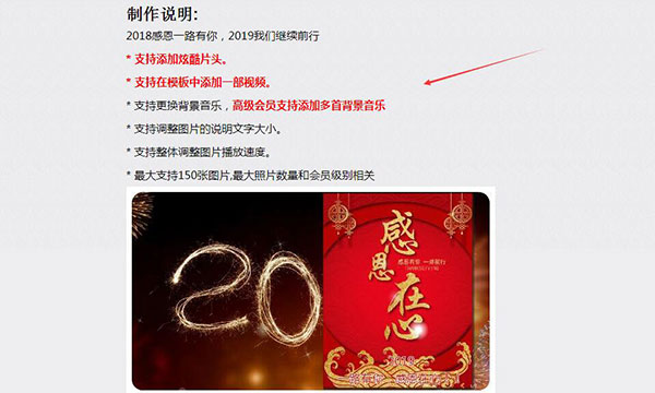 上传图片即可生成视频电子相册,并且可以下载清晰视频,可在大屏幕上播放。