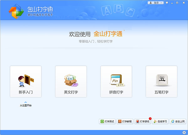 1、打开软件界面如下,支持新手入门,英文打字,拼音打字,五笔打字;