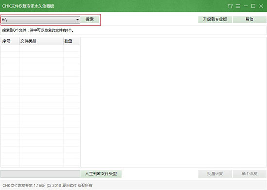1、打开CHK文件恢复专家,在软件窗口左上方的选择框中,选择需要进行CHK文件恢复的磁盘或文件夹,然后点击【搜索】按钮。