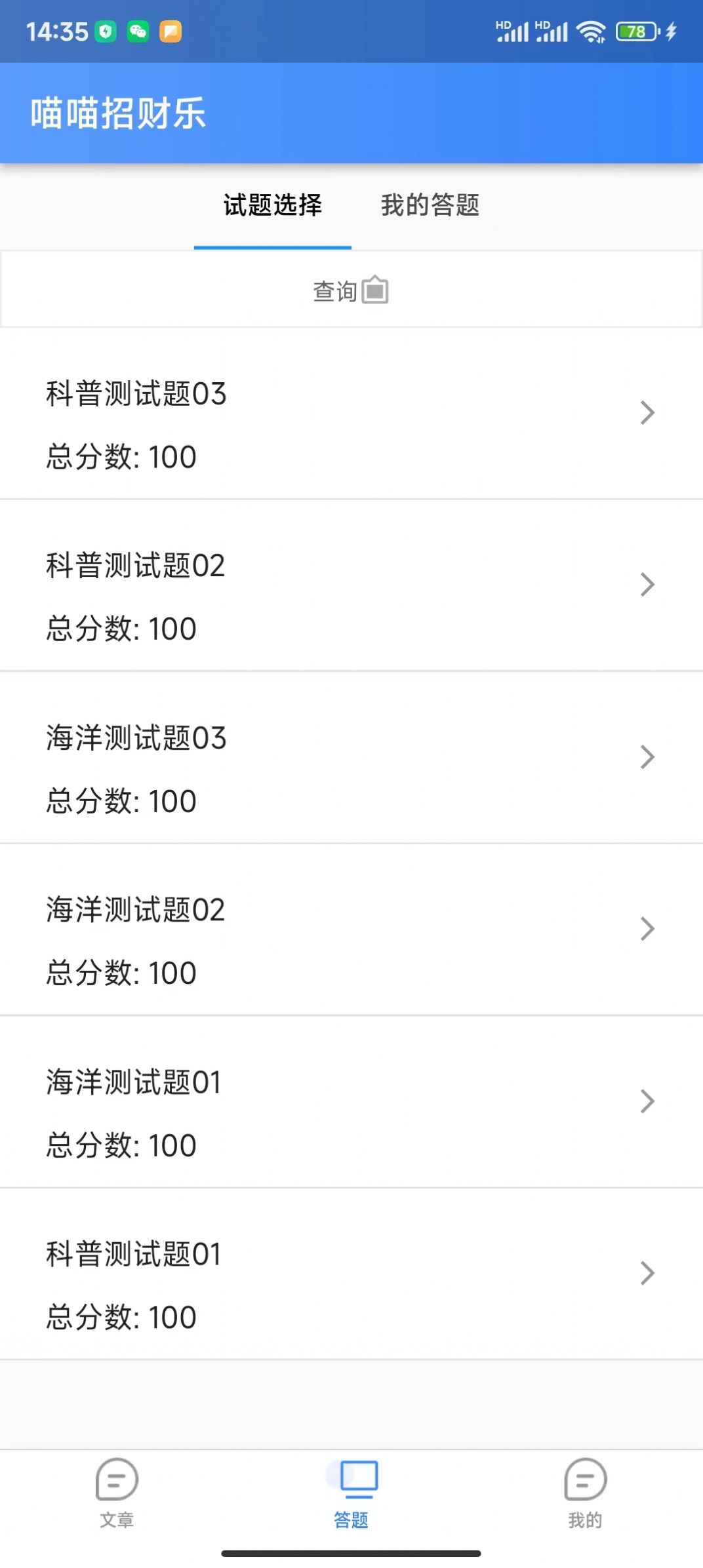 喵喵招财乐app是一个可以提供给到阿加娱乐闯关的答题工具,可以在用户休闲的时候进行闯关答题,带来的各种题库资源非常的丰富,可以从最低的关卡开始闯关答题,有大量的百科知识内容,让你在达提德过程中学习到最新的知识点内容,还能闯关领取答题福利哦。