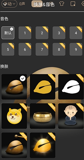 4、点击衣服图标可以切换敲击的音色以及木鱼的图标颜色等。