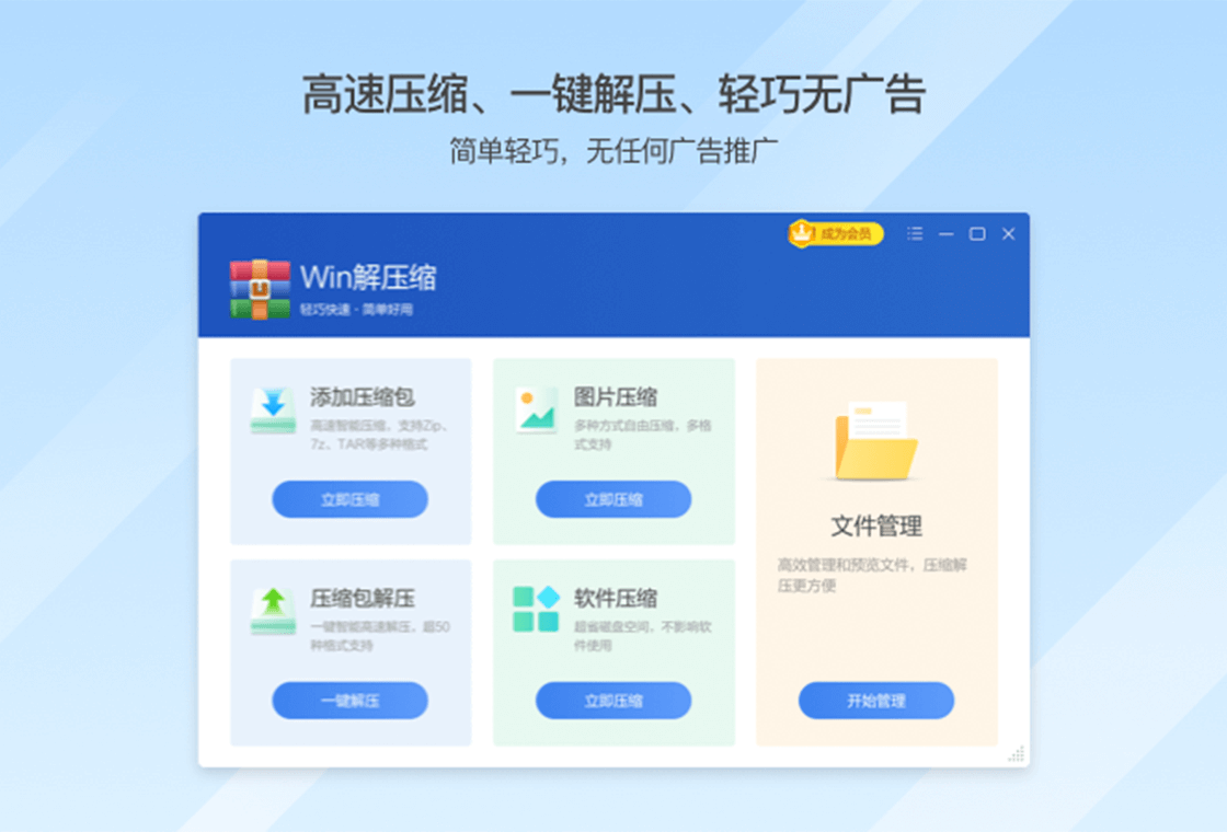 Win解压缩是一款常用的压缩文件管理工具。软件支持多种常见的压缩文件格式,用户可以创建新的压缩文件,选择压缩级别、文件格式、压缩方法等参数,并添加需要压缩的文件或文件夹,可以解压各种压缩文件,用户可以选择解压到指定的文件夹或直接在当前目录解压。用户可以对压缩文件进行加密和密码保护,以确保文件的安全性。