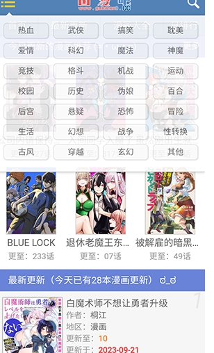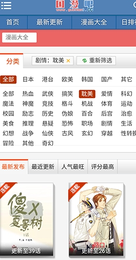 2、细化的类别,让用户可以精确的找到自己想要的漫画,节省了搜索的时间,也更容易使用。