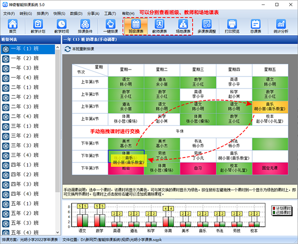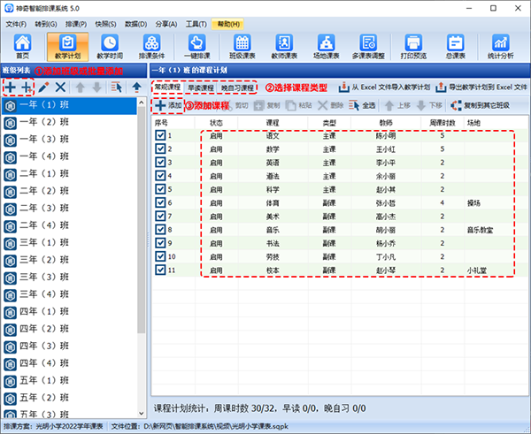 1、神奇中小学智能排课系统功能丰富,可以快速制作各种年级的课程表