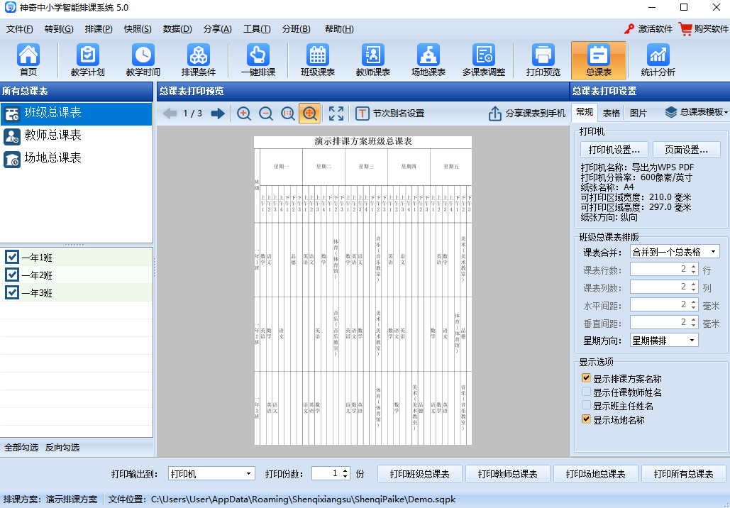 9、软件提供一个演示数据,新用户进入软件就可以打开演示方案查看课表创建规则